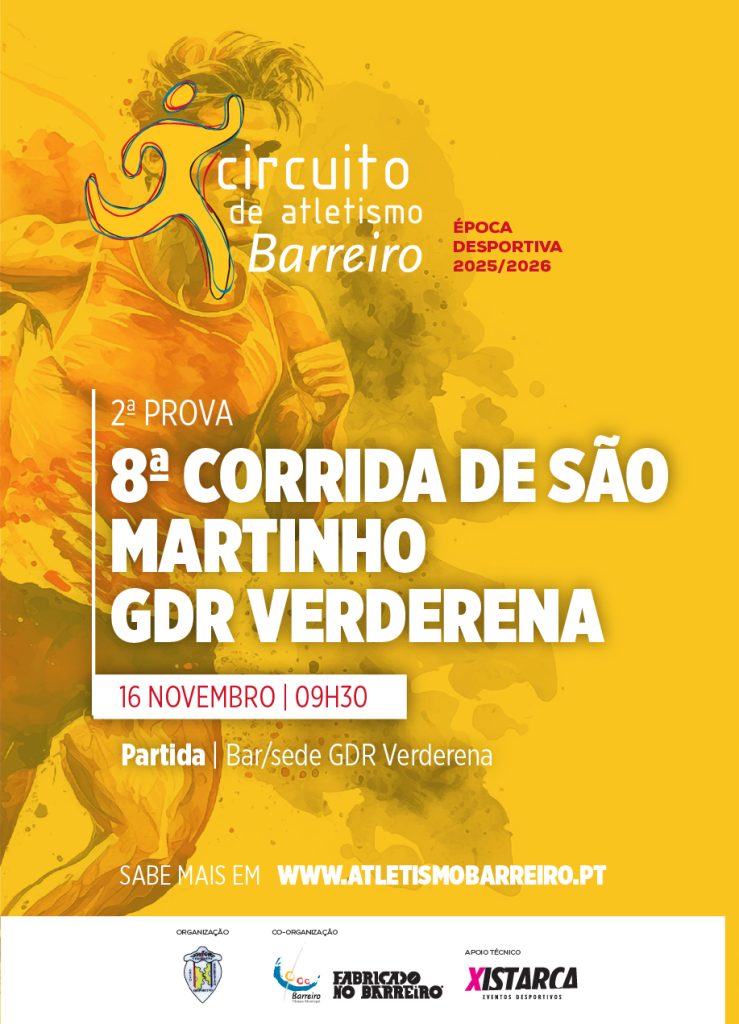 O Grupo Desportivo e Recreativo da Verderena, com a colaboração da Câmara Municipal do Barreiro e organização técnica da Xistarca, organiza no dia 16 de novembro de 2025 a Corrida de São Martinho GDR Verderena.
