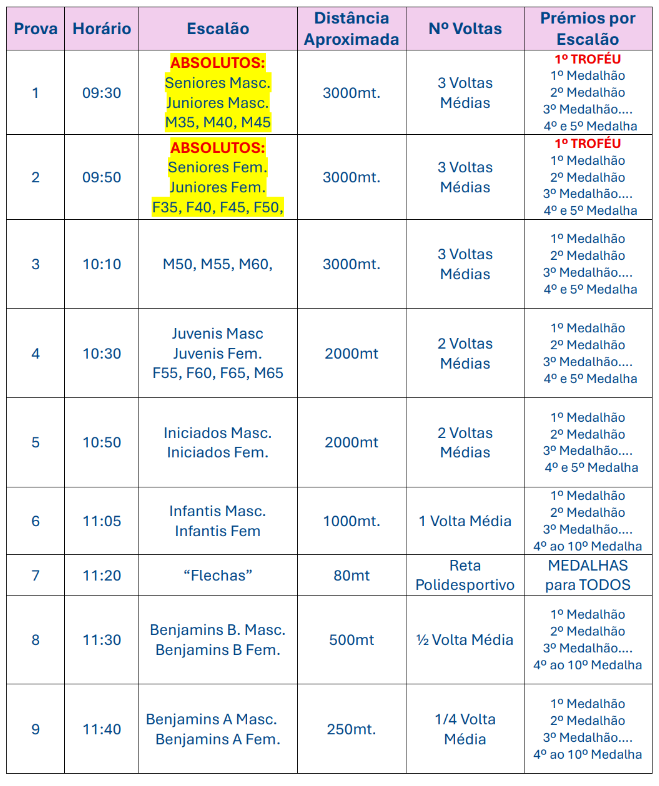 | 5 | Juv F (2009-2010) | 5 | 1.126 | LAUREN DIAZ RIBEIRO | 0:11:09.00 | 2009 | PÓDIO RECOVERY RUNNING CLUB | 6 | |