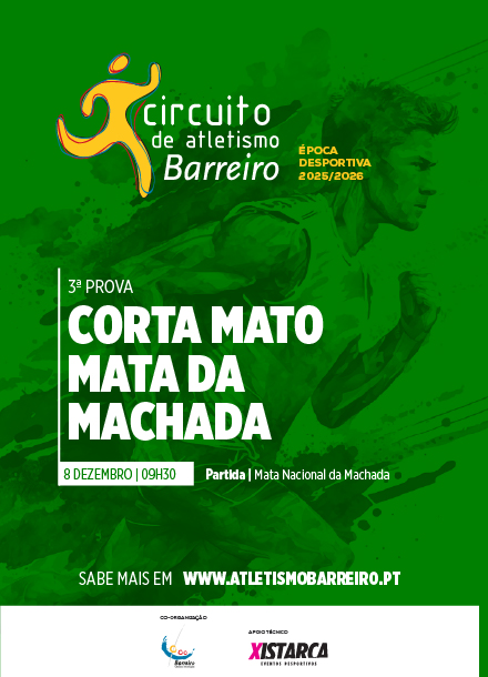 A Câmara Municipal do Barreiro, com a organização técnica da Xistarca, organiza no dia 08 de Dezembro de 2025 o Corta-mato da Mata da Machada.