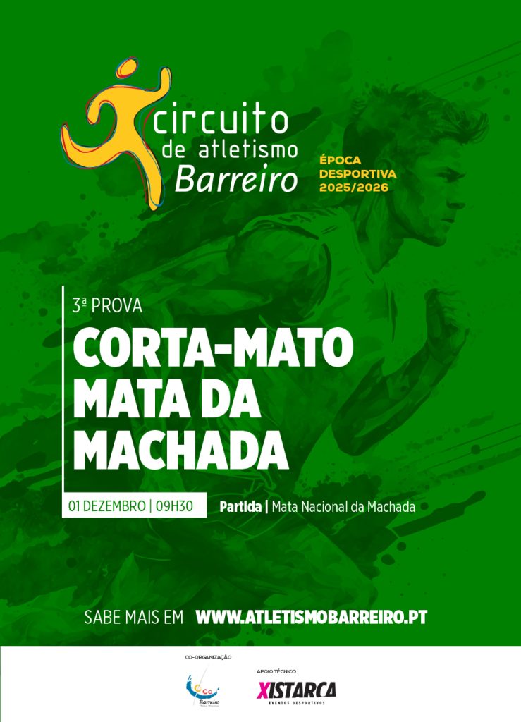 A Câmara Municipal do Barreiro, com a organização técnica da Xistarca, organiza no dia 01 de Dezembro de 2025 o Corta-mato da Mata da Machada.